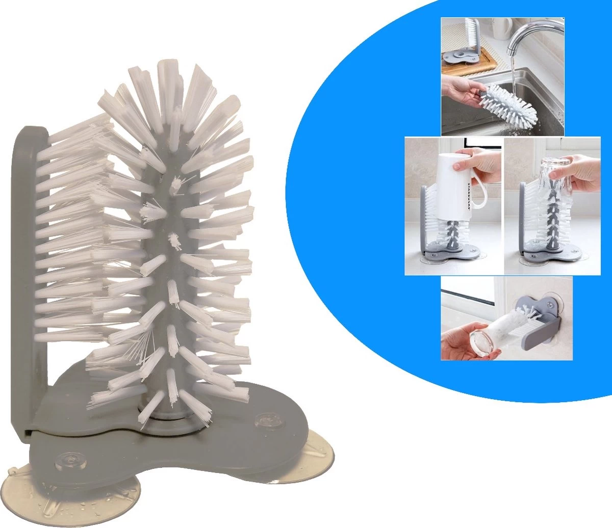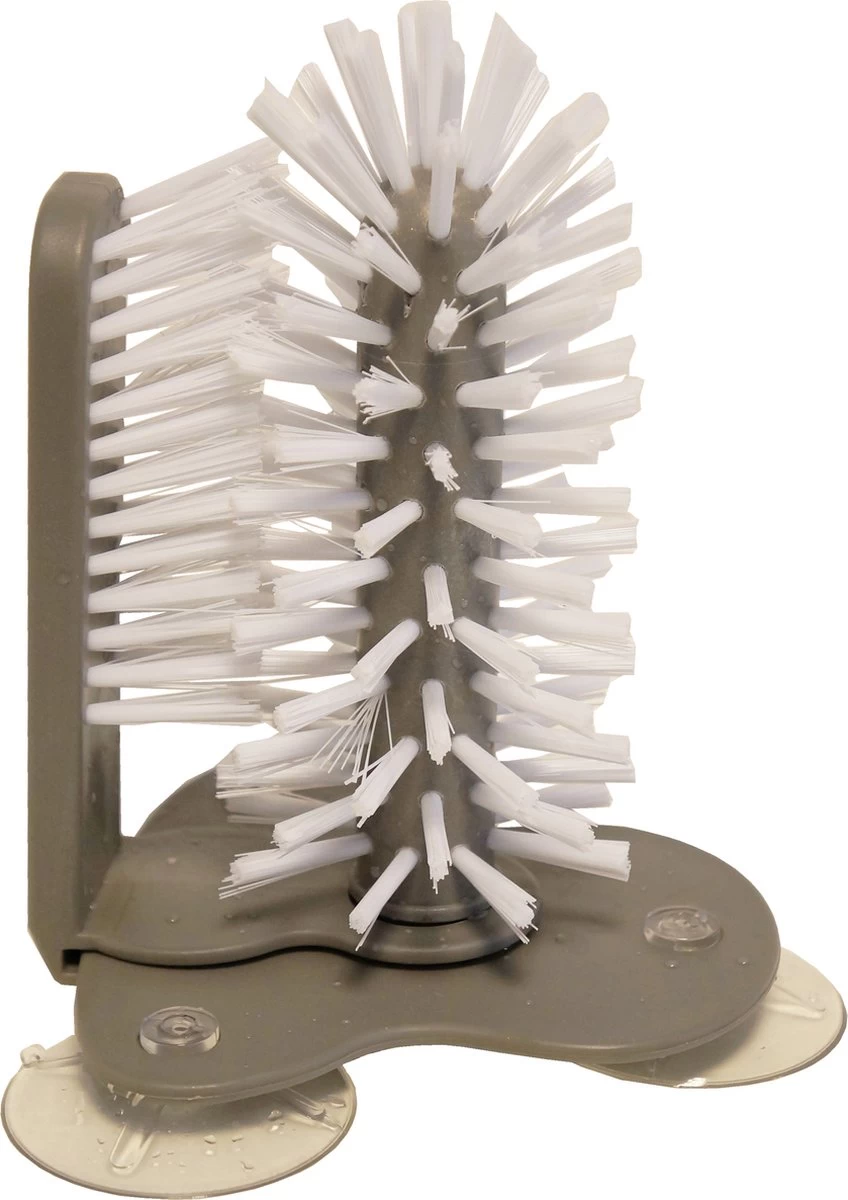 De glazenspoelborstel reinigt glazen aan de binnen en buitenkant in slechts een paar seconden. De zuignappen houden de borstel stevig op zijn plaats in de wasbak of aan de muur. Je hoeft alleen de glazen er op te duwen en enkele malen rond te draaien. Je glazen worden met een simpele beweging glanzend schoon. Met deze afwasborstel kun je snel en hygiënisch al je glazen, kopjes en bekers schoonmaken en is er minder kans op breuken.