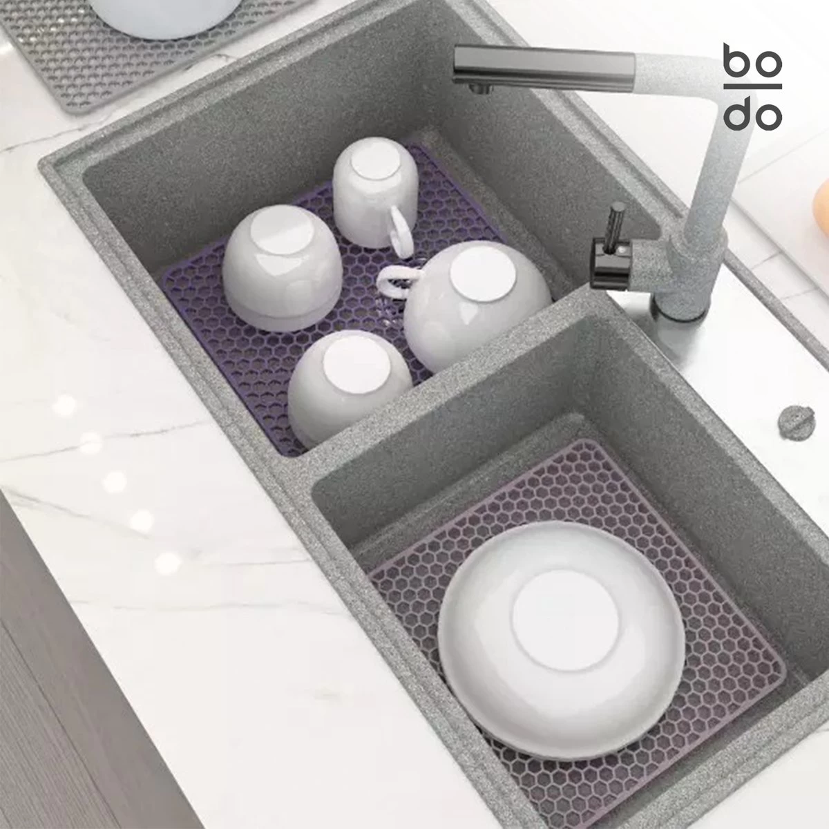De Bodo gootsteenmat beschermt uw gootsteen tegen krassen, vuil en verkleuring! Ook veilig voor het glaswerk en porseleinen servies.
