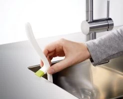 Met de afwasborstel Edge van Joseph Joseph was je eenvoudig al jouw vuile vaat af! Dankzij de harde haren zijn jouw vuile borden in een mum van tijd schoon en de geïntegreerde panschraper zorgt ervoor dat ook jouw pannen zo schoon zijn. Na gebruik hang je de borstel eenvoudig via de gootsteensteun op aan de gootsteen. Hierdoor loopt het overtollige sop en water makkelijk weg in de gootsteen. Jouw afwasborstel is hiermee niet alleen snel schoon, maar bespaart ook nog eens ruimte! Ben je op zoek naar een andere kleur? De afwasborstel is ook te koop in het wit!