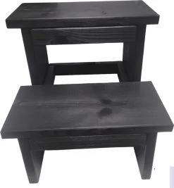 Dit keukentrapje is gemaakt van nieuw steigerhout. Alles wordt met handgemaakt. Je kan er gebruik van maken zoals een zitplaats voor spontane bezoeken, als opstapje om bij die hoge boekenplank te komen of als klein opbergmeubel in de woon- en slaapkamer. Deze houten kruk is behandeld met zwarte beits