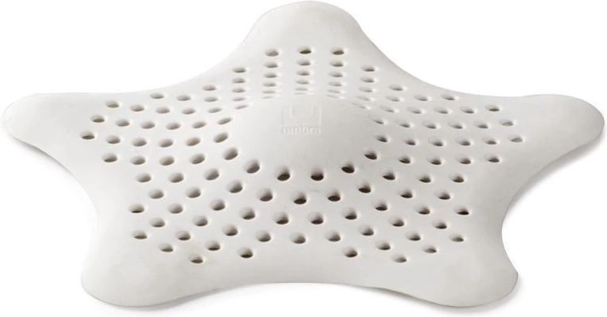Met het gootsteen zeefje Starfish van Umbra ziet je wasbak er ineens een stuk vrolijker uit. Plaats de zeester over je gootsteen putje en hij vangt alle etensresten en of haren voor je op. Ideaal voor in de keuken maar ook voor in de wasbak in de badkamer. Hij zuigt zich vast met zuignapjes. Materiaal: kunststof Afmeting: Ø 165 x 13 cm