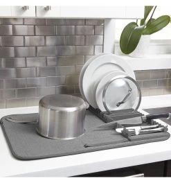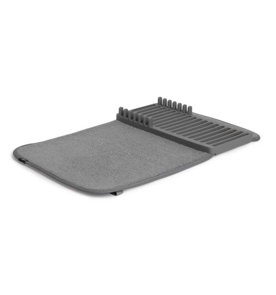 Een handige combinatie tussen een afdruiprek en een vaatdoekje, deze Udry mini van Umbra. Wanneer je een kleine keuken hebt is dit de ideale oplossing. Wanneer je een vaatdoekje gebruikt om de vaat op te zetten is deze vaak heel snel helemaal doorweekt. En een standaard afdruiprek neemt veel ruimte in beslag.